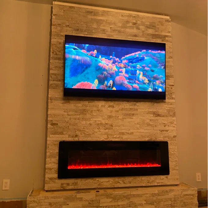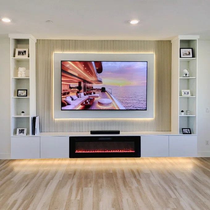 A modern recessed electric fireplace designed to bring warmth and ambiance into any space. Featuring adjustable flame color and speed, remote control operation, and a built-in timer, it delivers customizable comfort without the need for gas or ventilation. Designed to be wall-mounted or recessed for a seamless, architectural look, it transforms living rooms, bedrooms, and apartments into inviting, design-forward spaces.