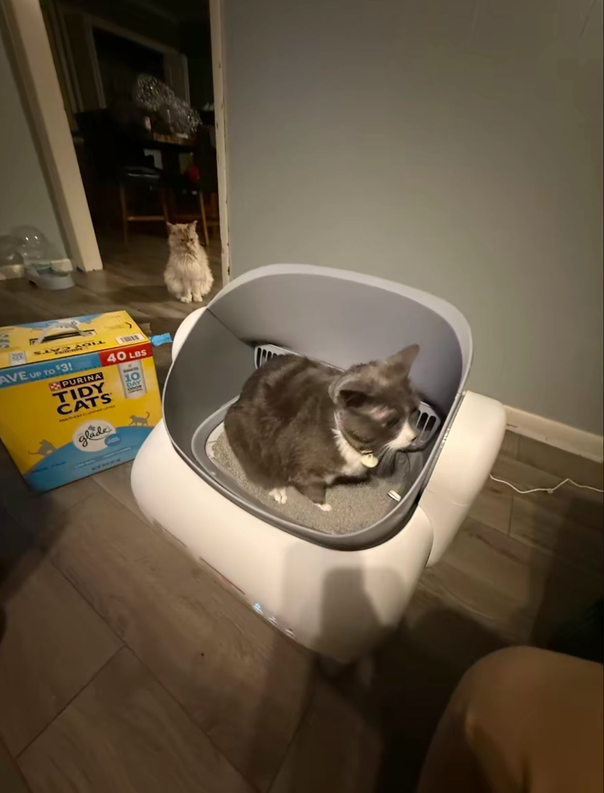 Not at all. Setup takes under five minutes — just plug it in, add litter, connect the app, and you’re ready.